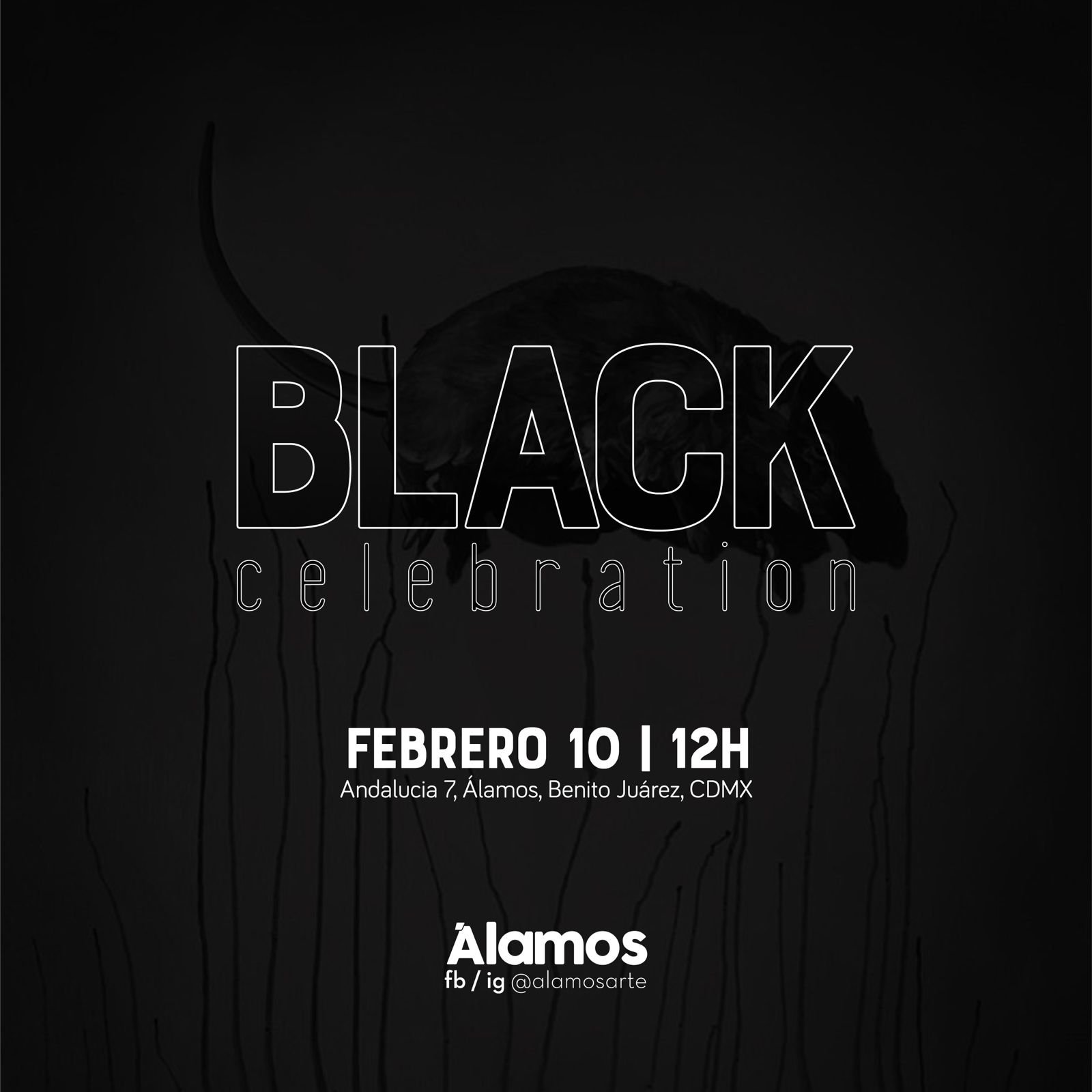 Para formar parte de la efervescencia de la semana del arte en la Ciudad de México, Álamos presenta Black Celebration, una extensa exposición colectiva compuesta por la obra de 22 artistas donde disertamos sobre el concepto de lo negro a través de dos claras líneas conceptuales, una donde el color funciona como un atributo formal adyacente a la materialidad de las piezas, casi como un remanente obligatorio; otra donde los tropos simbólicos asociados al negro se despliegan sin concesiones.