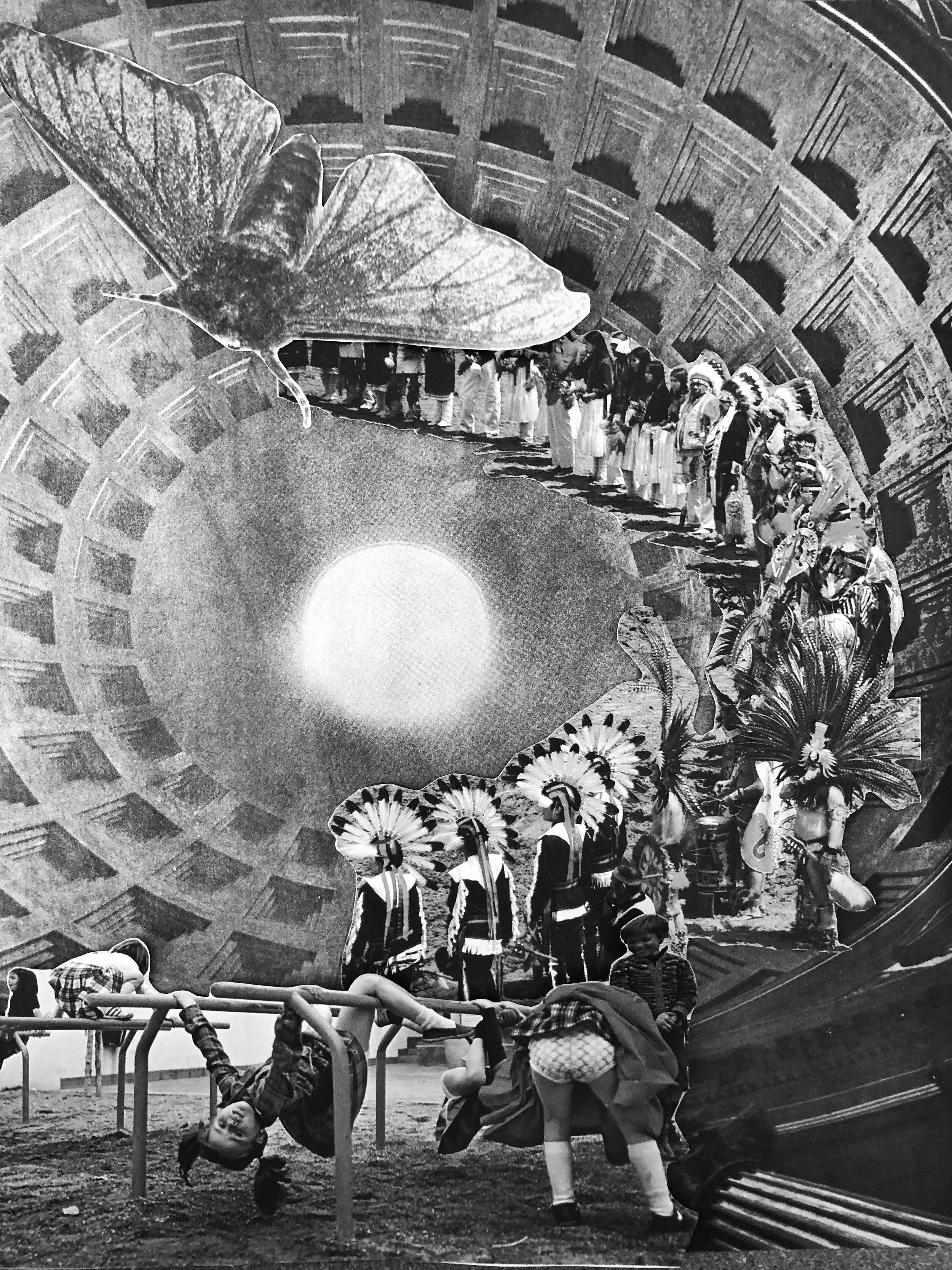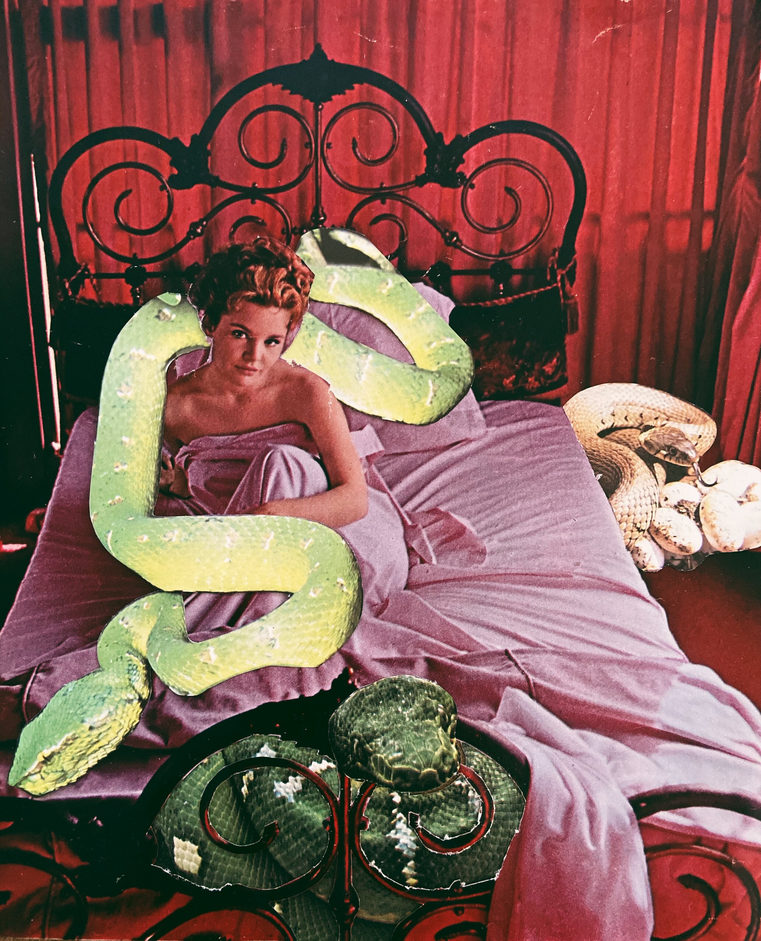 Me acerco al collage en el sentido lúdico. Abordo el ejercicio de creación desde esta libertad y la infinidad de lenguajes que entraña. El collage me permite tomar imágenes atrapadas en el tiempo, cautivas en libros de viejo, y resignificarlas en el presente, mezclarlas entre ellas a partir de una mirada actual, que es la mía y de quien la observa, para crear algo nuevo.