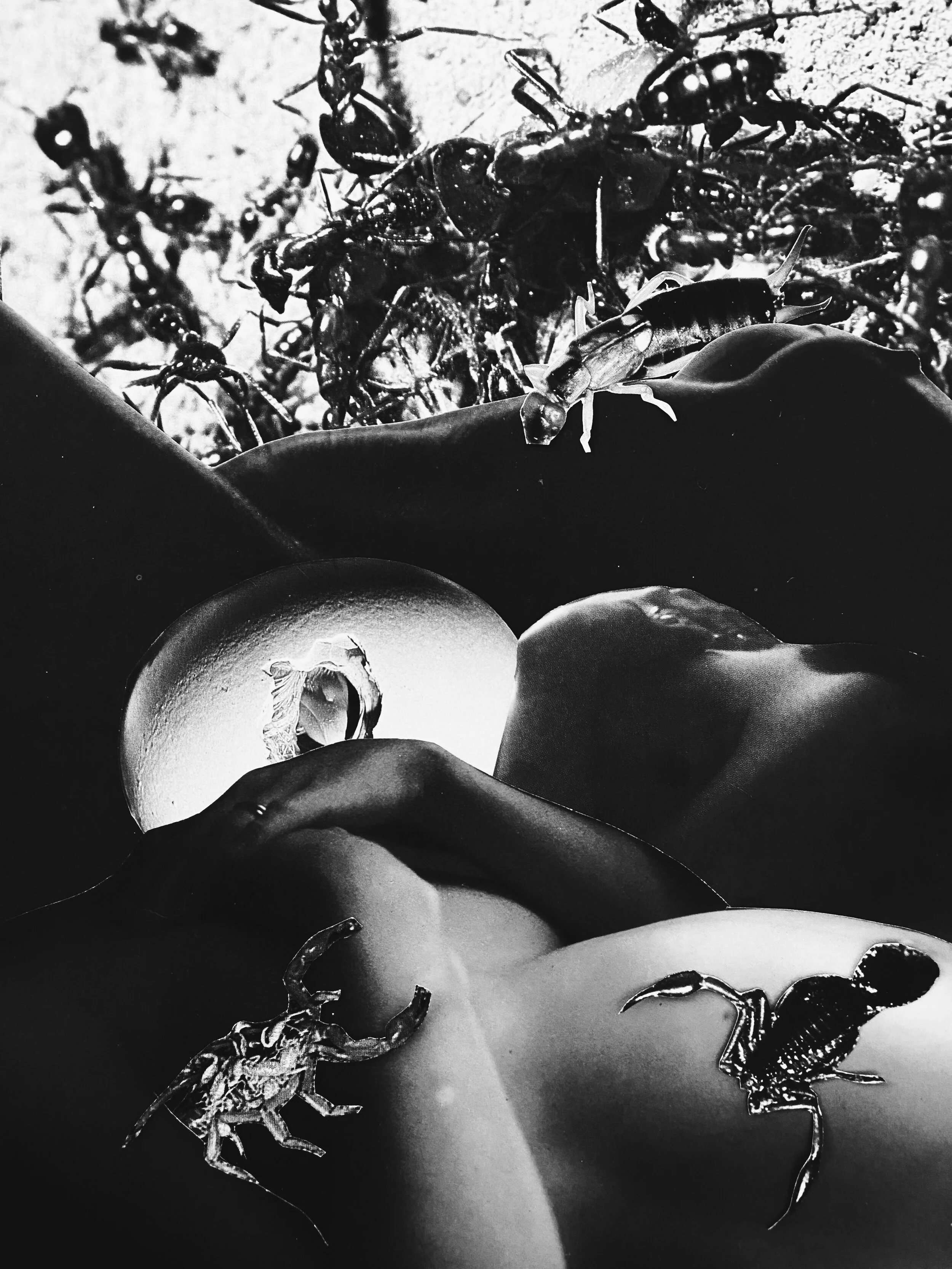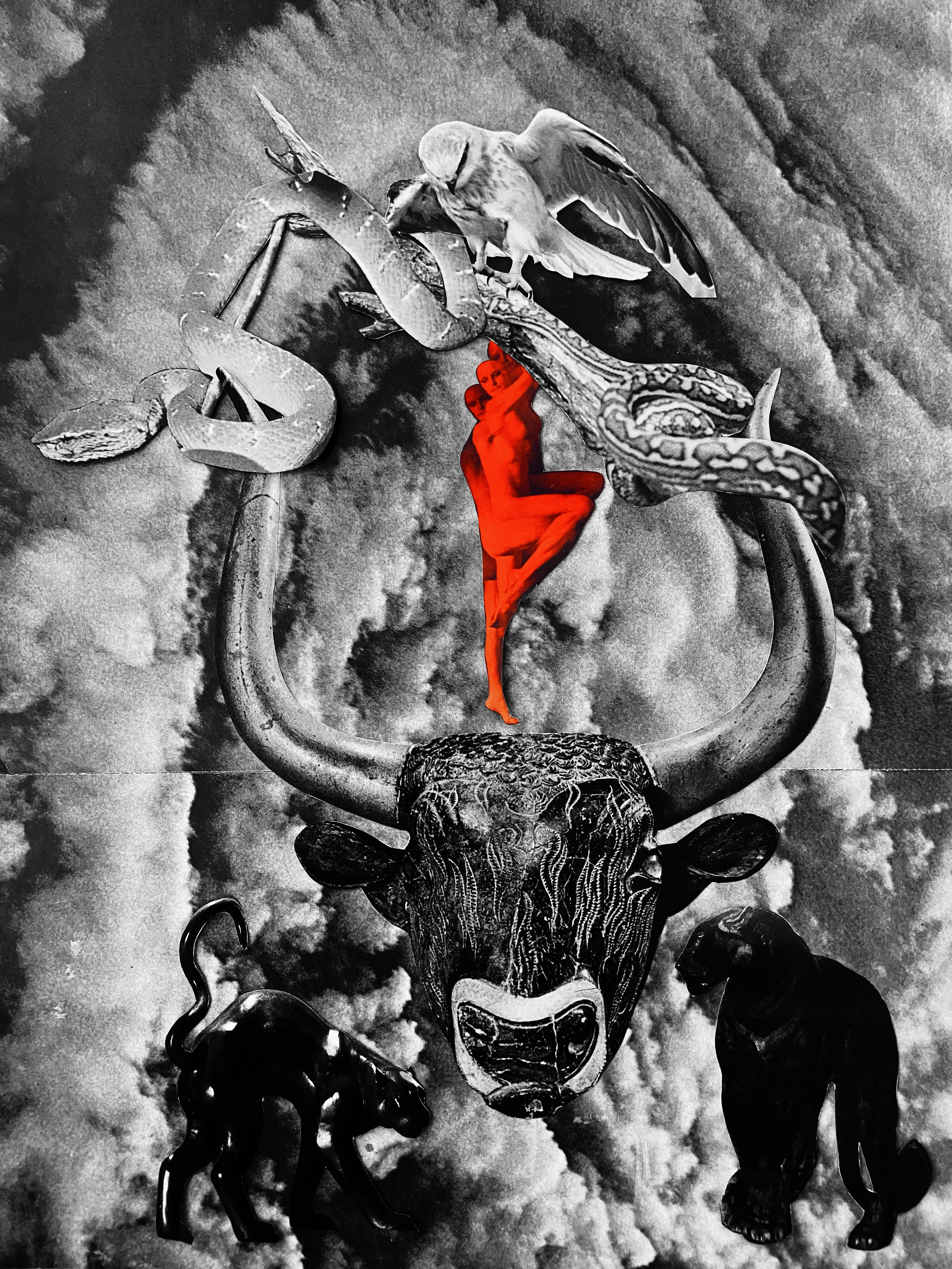 En mi creación, el collage ha sido un medio de exploración del subconsciente, que, a través de la fragmentación busca unidad; la apreciación de las imágenes fragmentadas para resignificarlas con una nueva mirada.